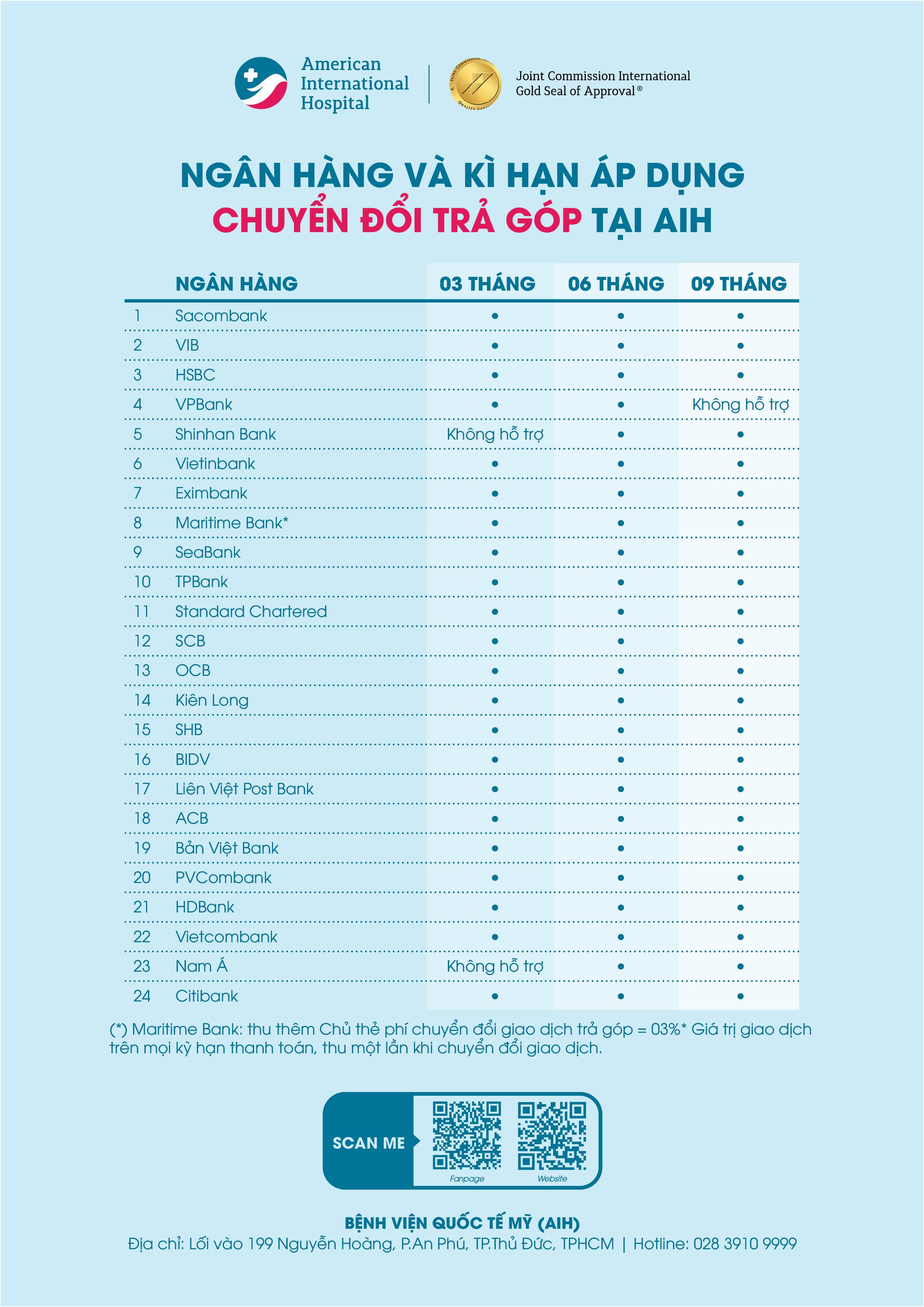 For detailed consultation, please contact our Hotline at (028) 3910 9999 or send a message to the AIH Fanpage at http://m.me/aih.com.vn.